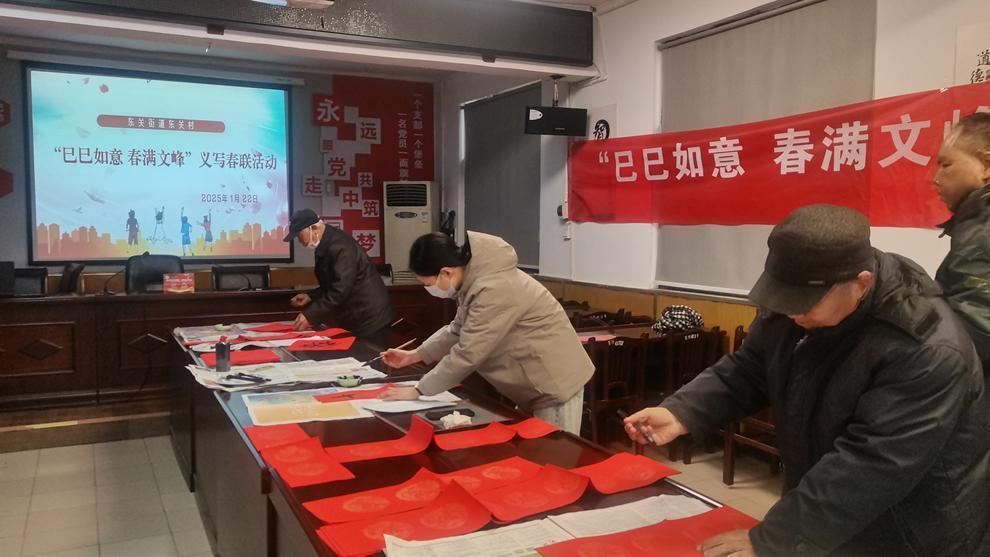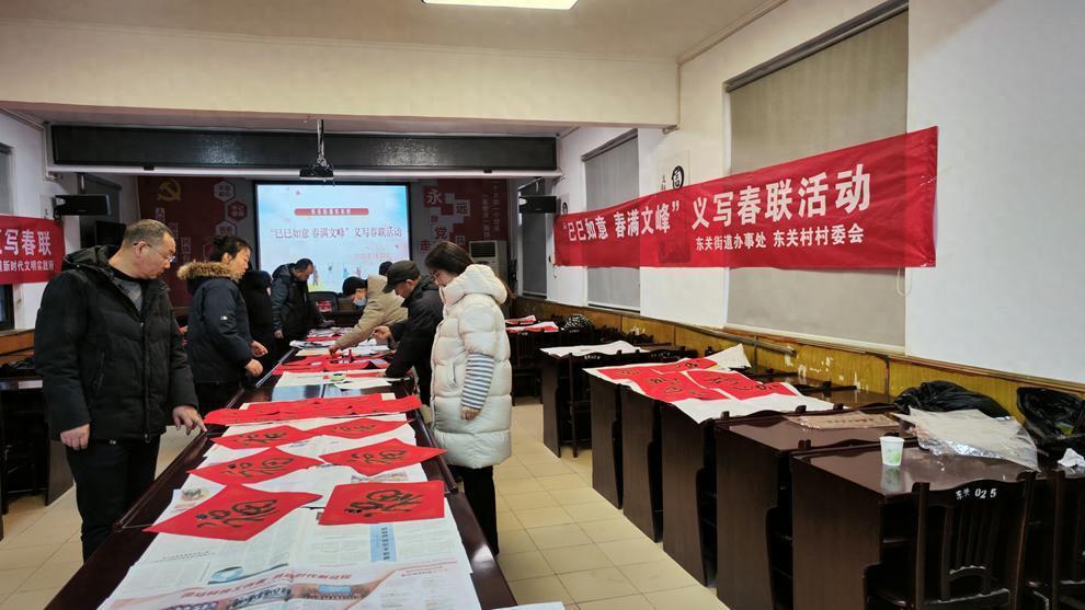 喜引春风拂绿柳,笑迎玉犬送金鸡。贴春联是我国春节的传统习俗,也是辞旧迎新过大年的一种象征。为丰富辖区群众的文化生活,营造欢乐喜庆、祥和文明的春节气氛,1月22日,文峰区东关街道联合东关村开展“巳巳如意,春满文峰”义写春联活动。此次活动邀请辖区书法爱好者和书法能人为村民免费写春联,把美好的祝福与浓浓的关爱送到村民手中。
